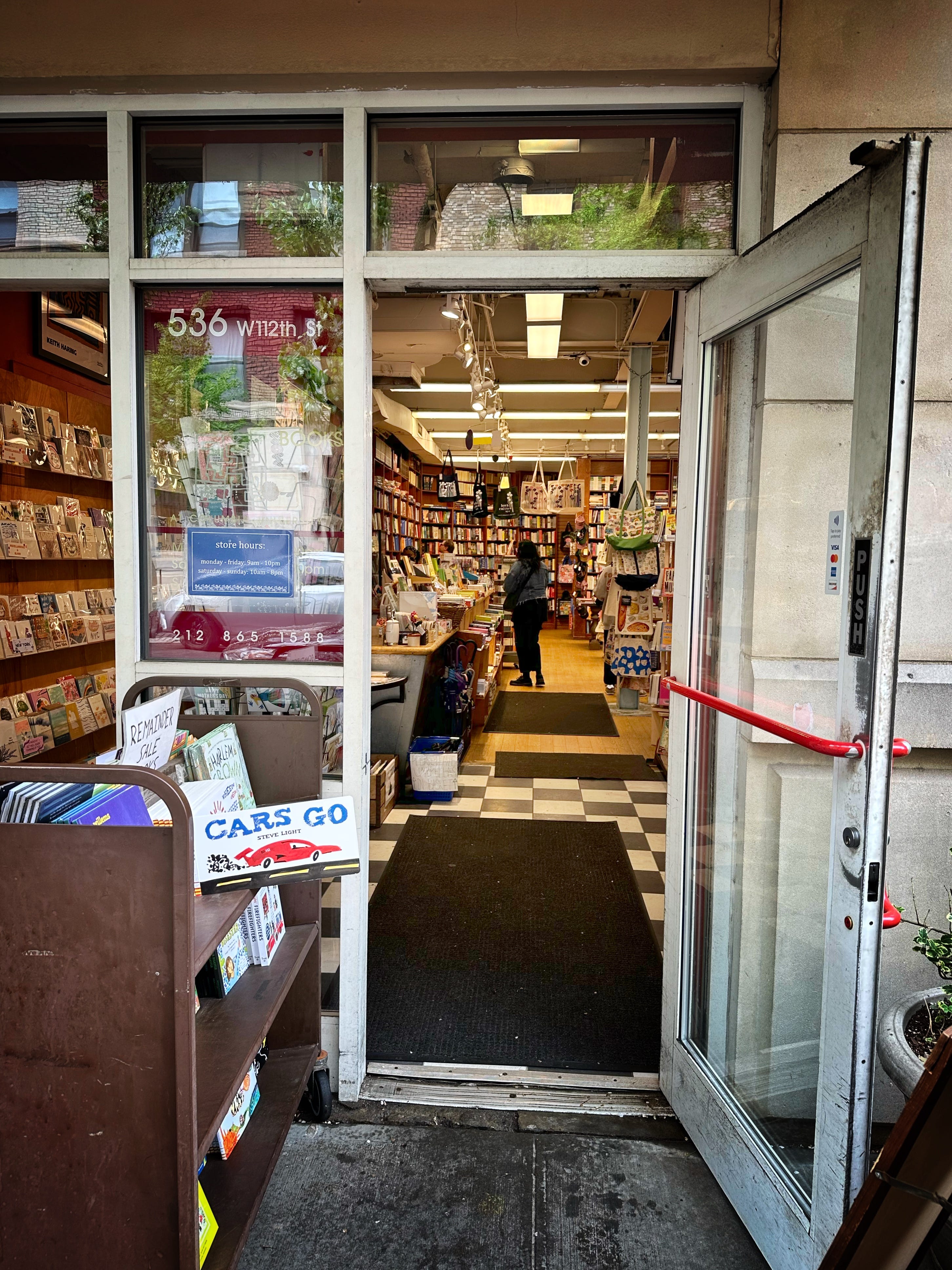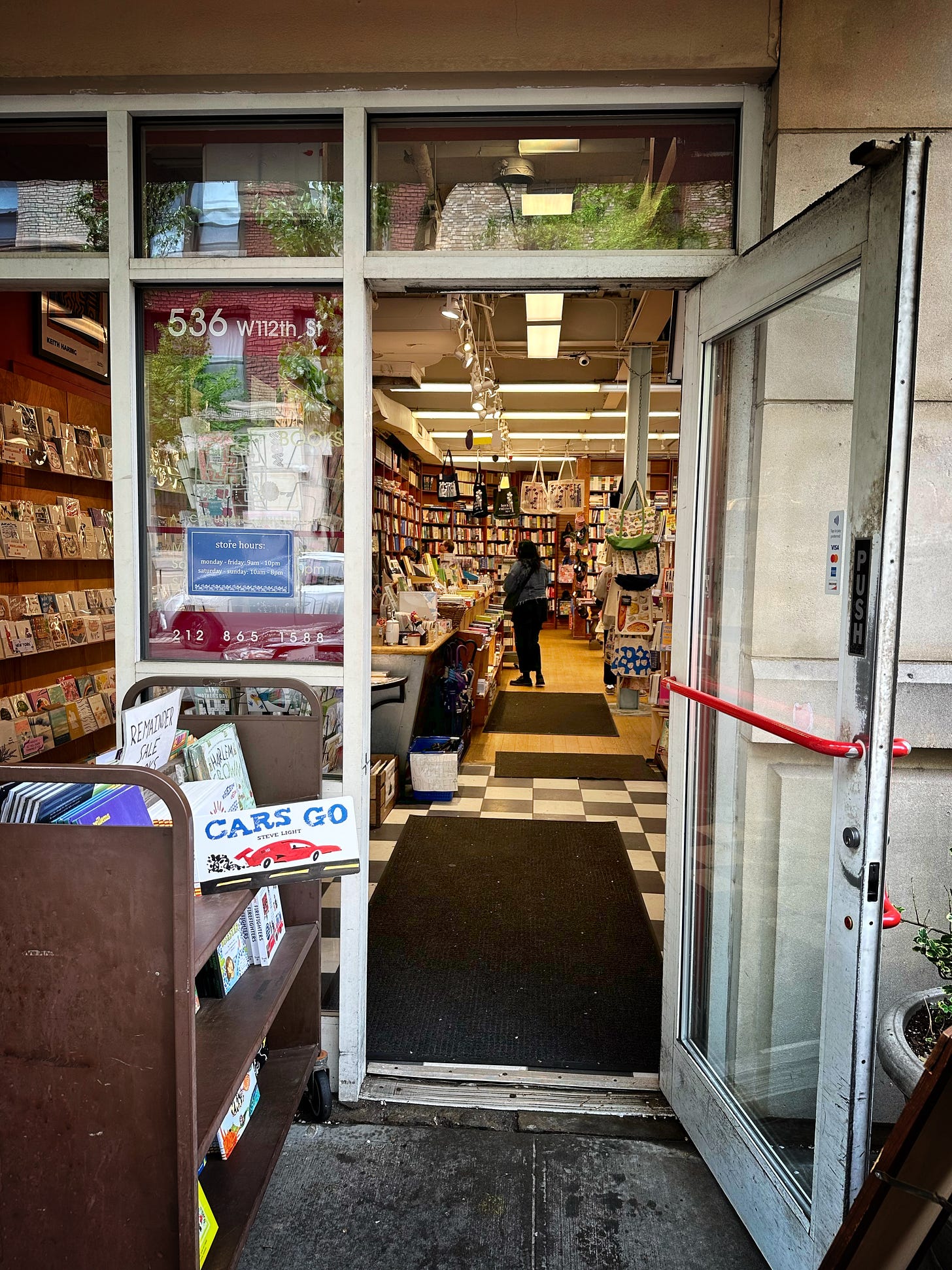 I heard singing, and looked up to see a coven of young women all in flowing black strolling down the street. They were laughing as they walked arm in arm, leaning into each other as they harmonized snippets of random pop songs. One young woman trailed slightly behind, distracted by the sight of the open door and the cart of sale books placed on the sidewalk like a bit of unassuming bait. “But … it’s a bookstore!” she called to her friends who were too far ahead and too engrossed in their music making to hear her.